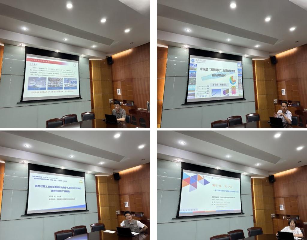 的科研团队分别就“复杂型腔深孔构件智控成形技术产业化应用、深层“双筒同心”地埋套管式地岩热供热技术”等6个项目,进行了详细的路演展示。期间,参会人员与路演团队进行了深入的交流讨论,分别从投资机构角度和科研团队角度提出针对性的建议。