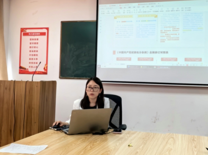 课堂上,潘娜以新修订的《中国共产党纪律处分条例》为主要内容,从《条例》修订的重要意义、对比《条例》修订前后条文变化以及《条例》的重点条文解读等方面进行了详细解读。就全体党员如何进行党纪学习,她提出了三点要求,一是牢记党员身份,严守规矩纪律;二是勇于自我革命,永葆战斗力;三是砥砺奋进,勇担时代使命。结合德州扑克