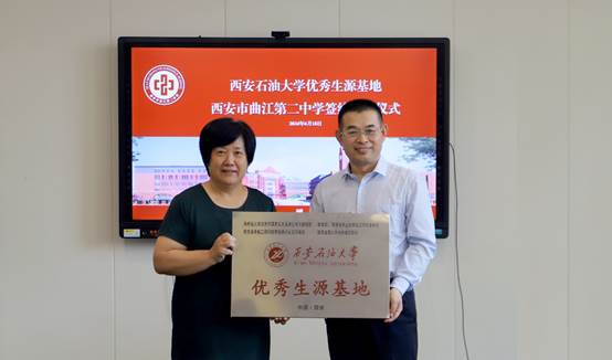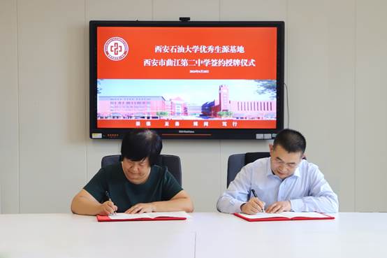 党委书记庞秉谦、教务处副处长陈熙等一行4人赴西安市曲江第二中学举行“优秀生源基地”签约授牌仪式。