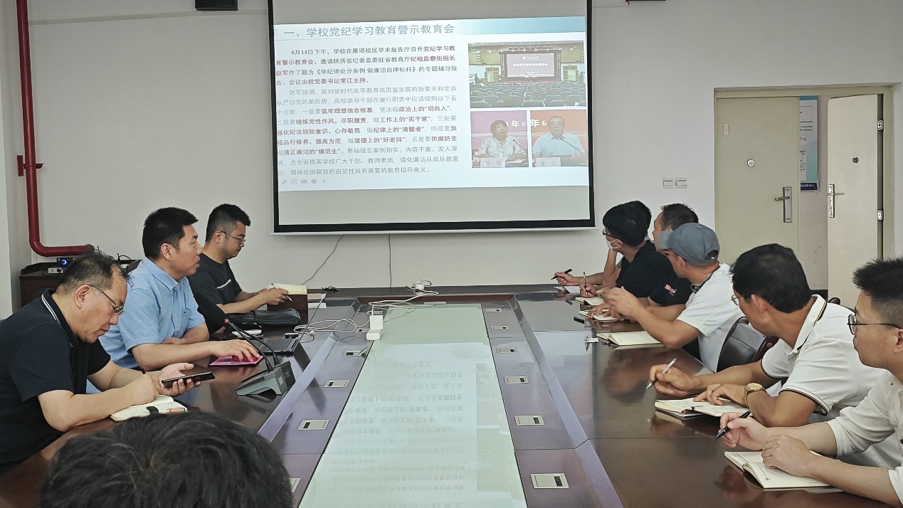 6月13日召开的党纪学习教育警示教育会相关精神,介绍了陕西省纪委监委驻省教育厅纪检监察组组长赵军所作的题为《学纪律处分条例 做廉洁自律标杆》专题辅导报告会相关内容,学习了赵军组长关于高校领导干部在履行职责中应该做到的五个方面要求以及校党委书记常江就进一步推动德州扑克