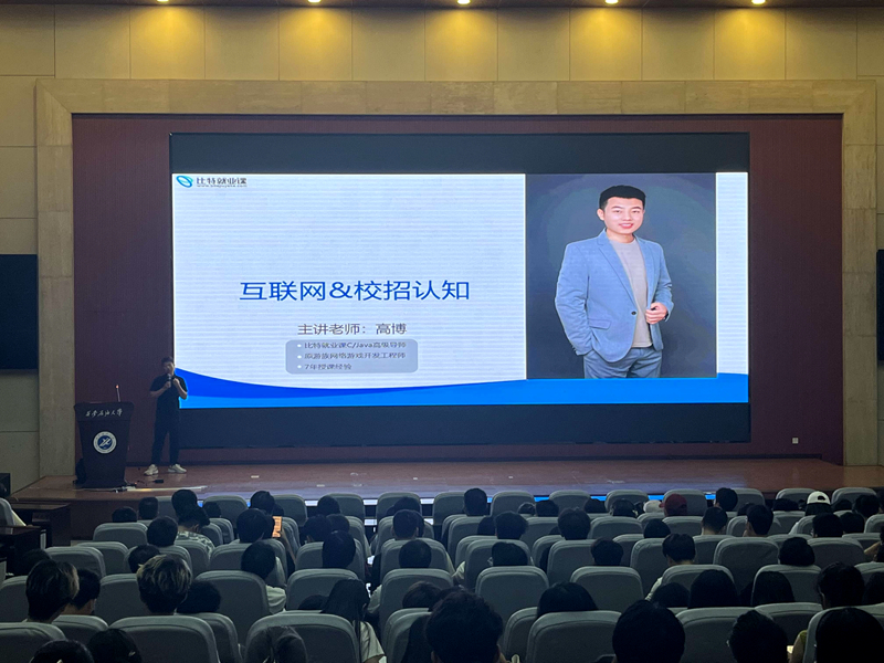 在鄠邑校区图书馆弘石报告厅召开2022级本科生职业生涯规划指导讲座,讲座邀请了比特科技高博老师主讲,2022级全体本科学生参加本次大会,会议由2022级辅导员姚谦老师主持。