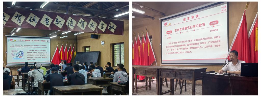 在红军遗址培训课堂,党总支书记苟毅飞从学“深”条例内容,在“识变从宜”中知纪于心;悟“透”主旨要义,在“心知其意”中立纪于身;用“活”规定要求,在“反躬自省”中化纪于行等三个方面,为全体党员干部讲授了题为《党纪学习教育要知纪于心、立纪于身、化纪于行》纪律教育微党课。通过讲授,进一步加深了党员同志们对党纪党规的深入理解与重视,推动了党纪学习教育走深走实。