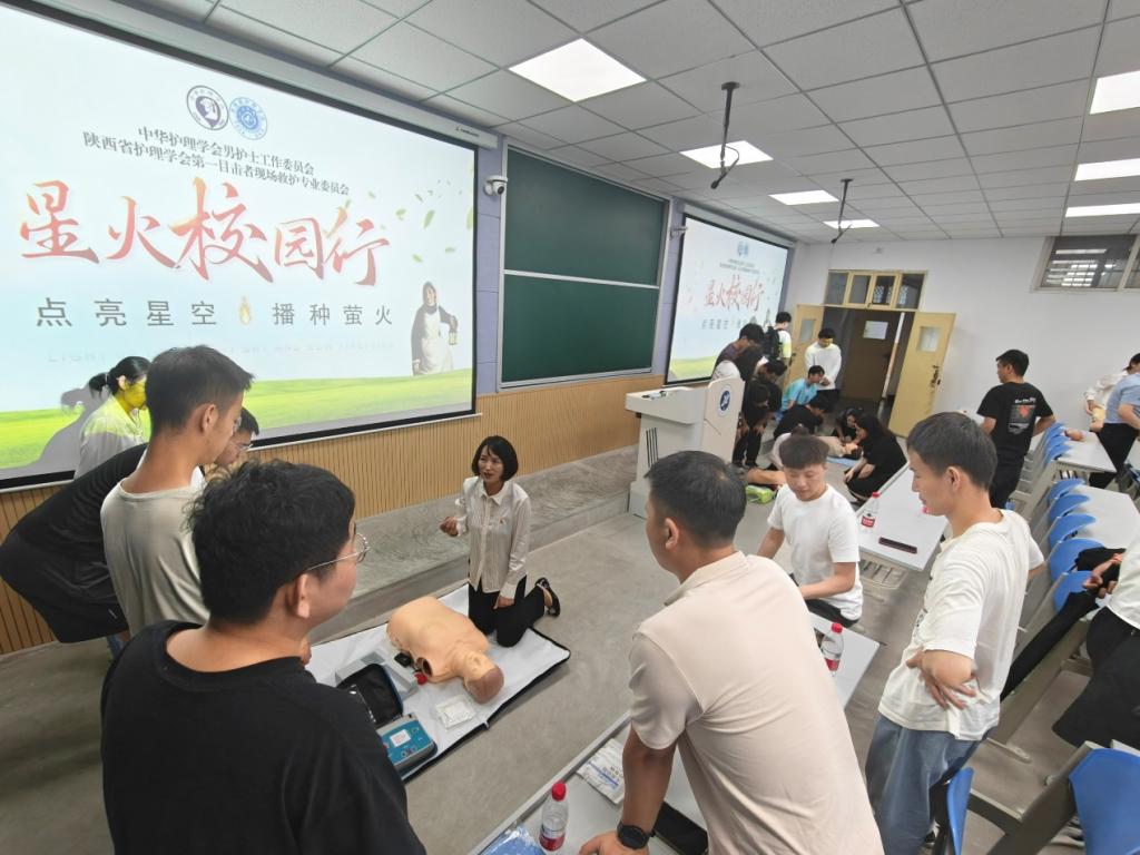 邀请陕西省护理学会现场救护专业委员会来校开展“第一目击者”现场急救培训活动,为同学们带来了一场别开生面的成人与儿童心肺复苏、ADE使用、气道异物梗阻急救、外伤包扎止血的知识培训。本次活动在鄠邑校区A108教室举行,由化学化工德州扑克