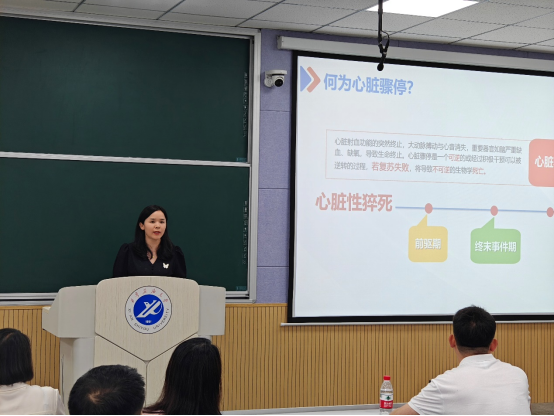 环境工程系主任兼现场救护专业委员会副主委杨博主持,全校100余名同学参加。