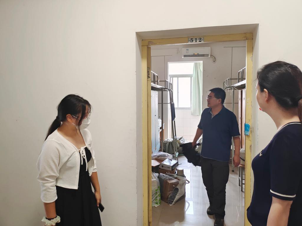 领导在学生宿舍询问搬迁进度、调查搬迁难处,同学们纷纷表示对宿舍环境十分满意,并对德州扑克