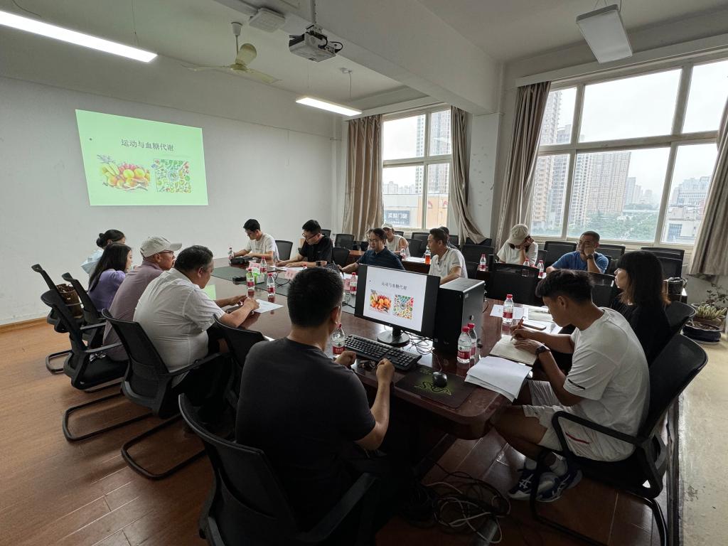 肖发荣、石少虎担任评委,院长李寿邦主持,社会体育指导与管理教研室共7名教师参加比赛。