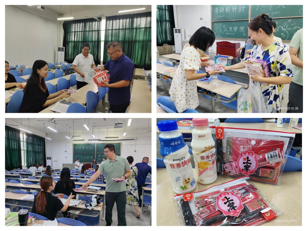 党委书记余小勇,院长方亭,副书记盛丹,副院长方松林、兰昆以及2021级辅导员张馨元前往考研自习室慰问暑期留校学子,并送去考研文具、清凉饮料、零食等慰问品。