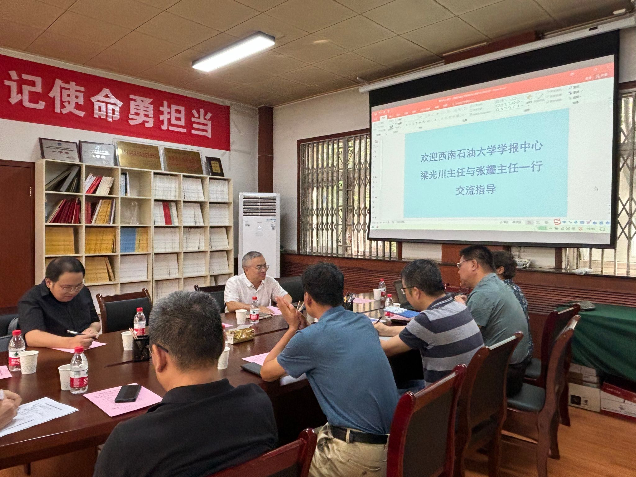 9月10日下午,西南石油大学学报中心主任梁光川、英文刊《Petroleum》编辑部主任张耀一行二人来访交流,座谈会在期刊中心会议室举行。期刊中心负责人、各编辑部主任及部分编辑参加了交流座谈。