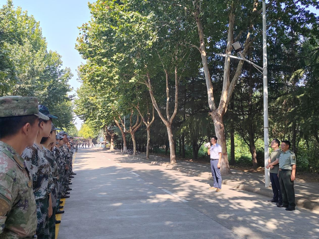 向承训教官和辅导员的勤恳工作表示肯定与感谢,对同学们在军训中展现出的不畏艰难、勇于挑战的精神给予了高度评价。他表示,军事理论的学习和军事技能的训练,有助于磨砺参训学生的身体素质和坚强意志,增强其国防观念、组织纪律性和爱国主义精神。他强调,要做好充分的保障,时刻关注天气变化和训练情况,切实保障军训安全顺利进行。他希望全体参训学生持之以恒,刻苦训练,在军训中不断收获进步与成长,不断提升自我。