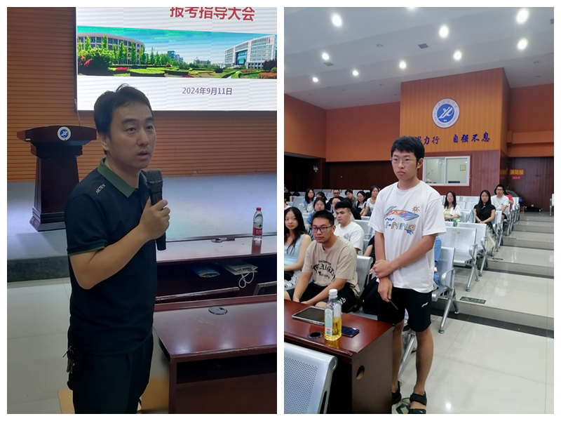 在崇文楼118报告厅举办2025届学生考研报考指导大会。院长刘志坤、党委副书记庞远、副院长张留美、2021级辅导员李路及120名拟考研学生参加了本次会议。