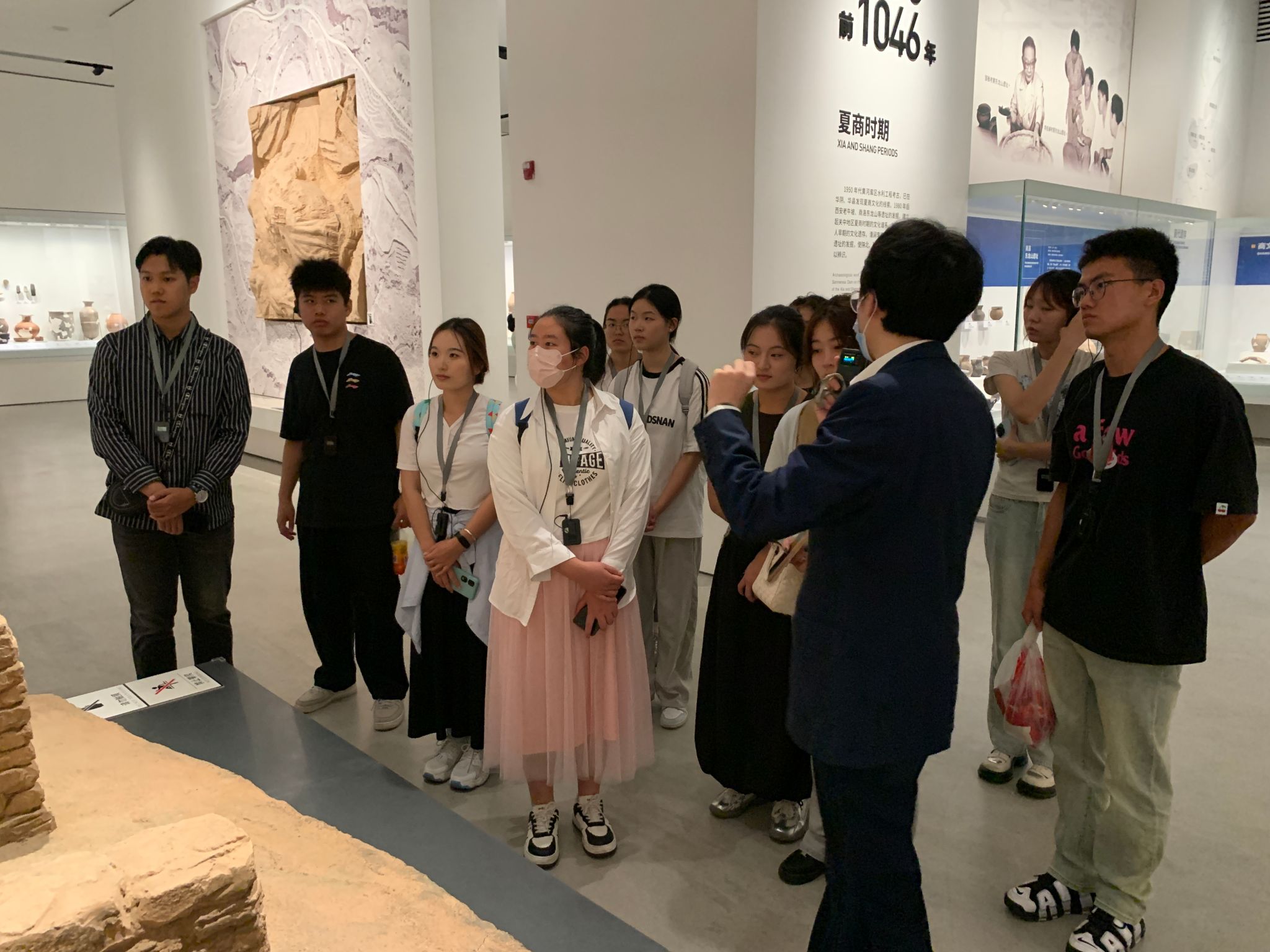 在讲解员的带领下,现场师生参观了“考古历程”、“文化谱系”、“考古发现”和“文保科技”四个展厅。通过5000余件精美文物,开展了一场与文物生命、考古魅力的近距离对话,同学们认真聆听讲解员的精彩介绍,全神贯注地观察每一件珍贵文物。从天宝物华秦地到山壮河阔关中,从昭陵六骏武勇到大唐三藏文雄,无一不被中华文化的魅力所吸引,深刻感受到了中华文明的灿烂辉煌。