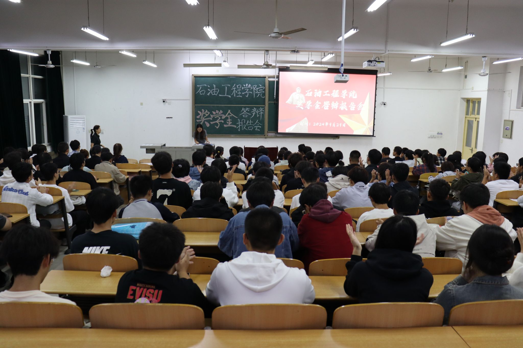 报告会伊始,2024级辅导员程丽杰介绍了本次奖学金答辩专门组织学生旁听的目的和意义,旨在以评促学、以评促进,进一步激发学生的学习热情,营造比学赶帮超的浓厚氛围,鼓励学生踊跃投身于专业学习、科学研究、社会实践等领域,在实践与探索中不断磨砺自我、精进提升。随后,各年级候选人依次对上一学年在思想政治素养、学业成绩、科研竞赛经历以及实践活动等多个方面所取得的进步和成绩作了总结汇报,对申请理由做了全面的阐述,并回答了评委老师的提问。根据各候选人的综合表现和实际成绩,德州扑克
