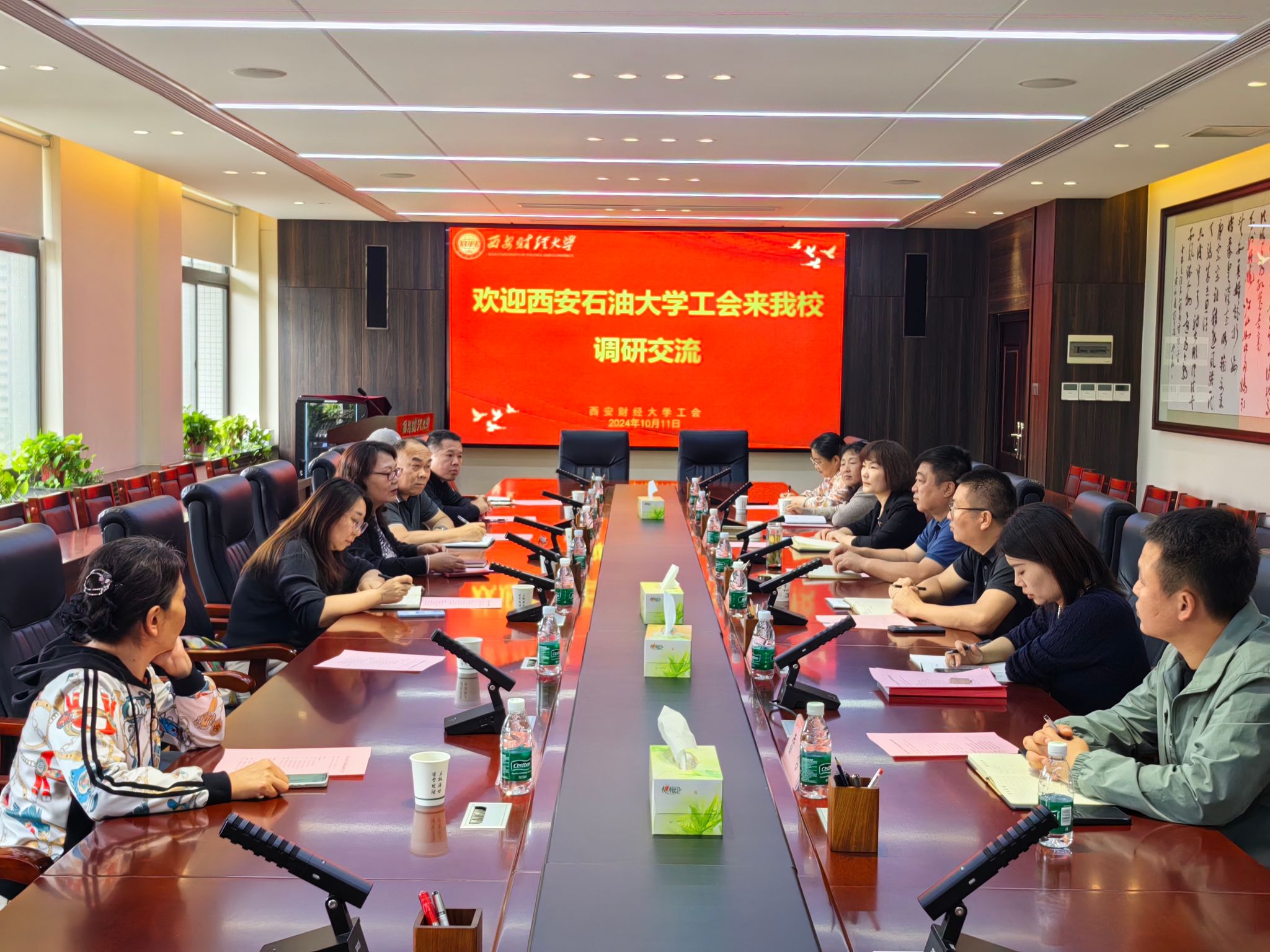 工会一行7人前往西安财经大学工会就高校工会工作开展调研。调研座谈会由西安财经大学工会主席王军主持,工会副主席、乡村振兴办公室主任王培、工会副主席王蓉以及相关工作人员参加了本次座谈。