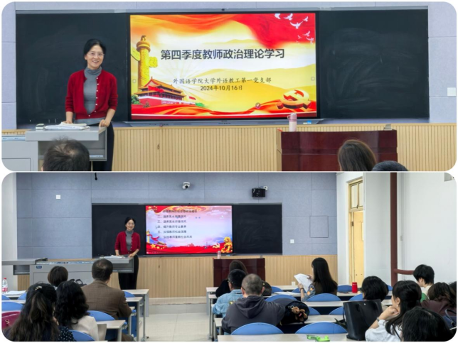 大学外语第一教学部全体教师在鄠邑校区A209教室召开“第四季度教师政治理论学习”扩大会议暨系部期中教学工作会。会议由党支部书记付俊芳主持,大学外语第一教学部全体教师参加。