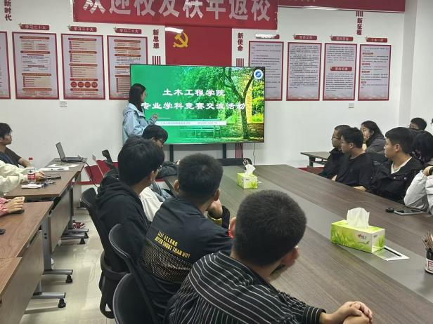 交流会上,康老师强调了学科竞赛对学生专业素质提升的重要性,鼓励在场的同学积极参与,将所学知识付诸实践,挑战自我,追求卓越,奋发向上。智能建造学社的同学以“斯维尔杯”为例,介绍了比赛详情、德州扑克
