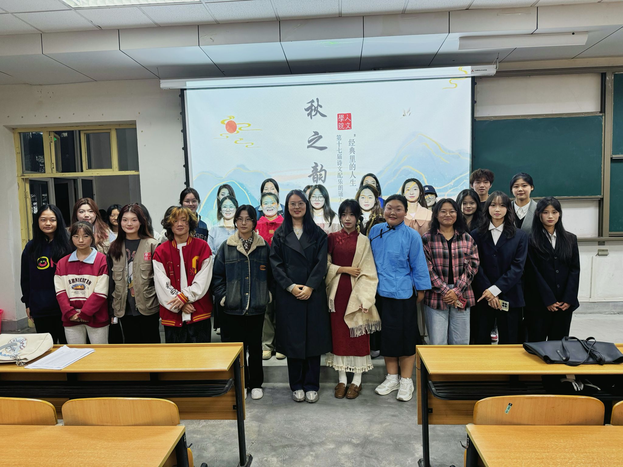 在鄠邑校区博览楼A139教室开展了第十七届“秋之韵”诗文配乐朗诵院系初赛,2024级辅导员樊煜及全体学生参加此次活动。