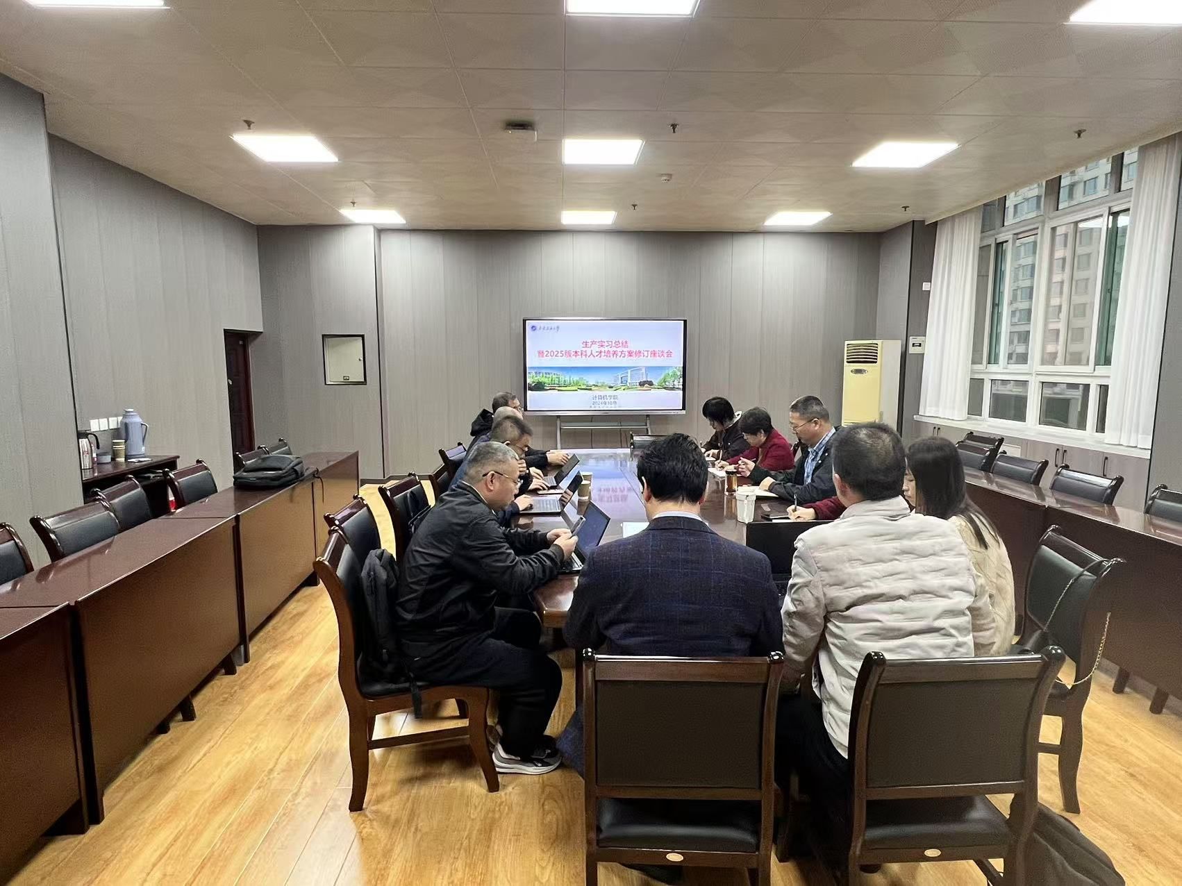 于2024年10月31日在雁塔校区二号教学楼404会议室召开生产实习总结会暨2025版本科人才培养方案修订座谈会。会议由副院长杨文阳主持,各专业负责人及实习企业代表参加。