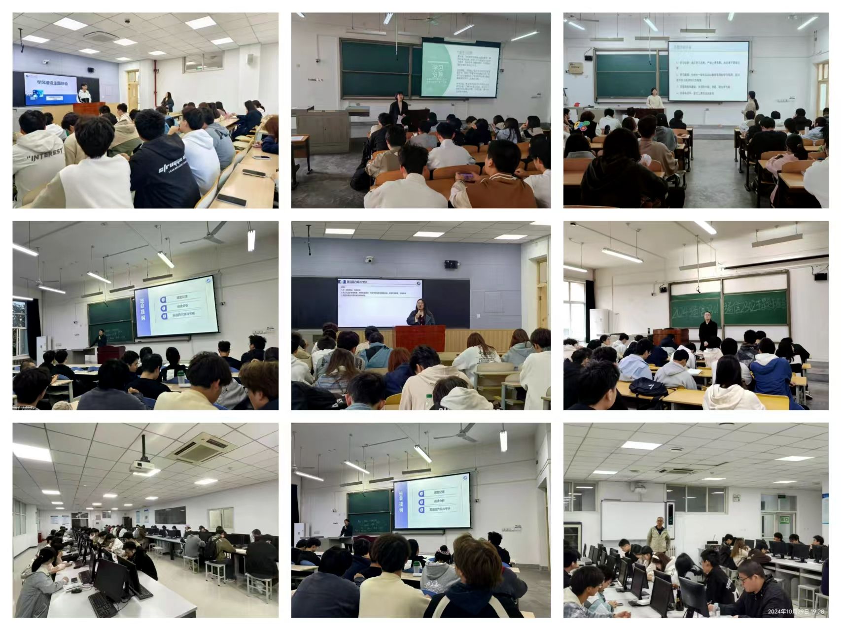 在全体本科生范围内分班或班级联合召开了学风建设主题班会。
