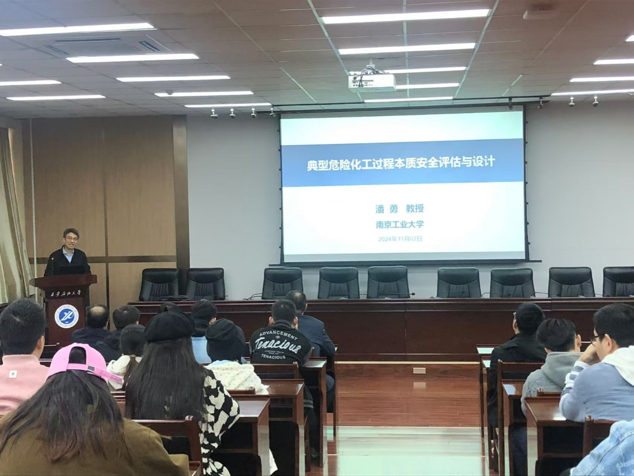 潘勇教授分别从化工物料、反应、工艺三个方面,紧密围绕化学品结构危险性及固有风险评估、反应热失控演化与临界判据模型、反应工艺本质安全评估优化等关键问题进行报告,潘教授建立了典型危险化工过程本质安全关键技术体系并进行了工程应用,提升了过程本质安全化水平,从“源头”上减少或预防重大事故发生。潘教授以近年来典型化工安全事故为切入点,提出了对实验室安全管理方面的思考和建议。与会老师和同学对报告内容非常感兴趣,潘勇教授和与会师生就有关问题展开了热烈的互动讨论。