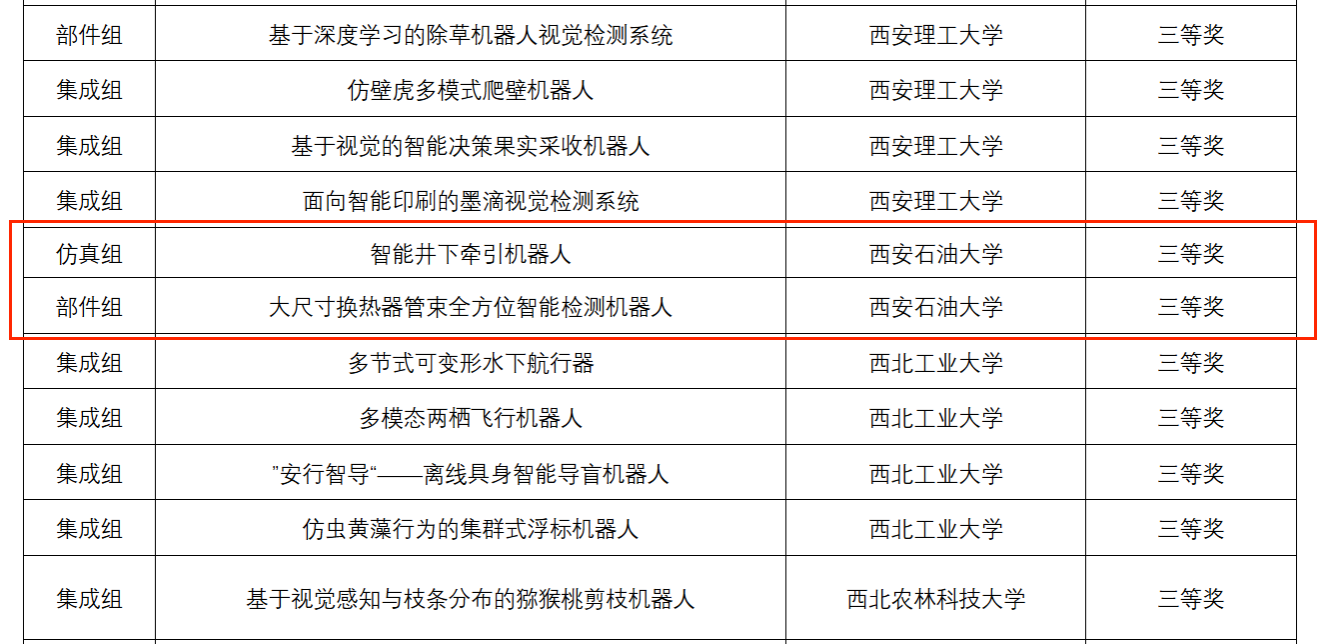 郑杰副教授指导的2022级研究生尚祖跃等同学的作品“智能井下牵引机器人”、2023级研究生高鑫等同学的作品“大尺寸换热器管束全方位智能检测机器人”最终均获得全国三等奖。