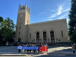 11 月 9 日,交流团抵达早稻田大学进行参观访问。在早稻田大学中国留学生的引领下,交流团成员参观了大隈讲堂、大隈图书馆、经济与政治学部等一系列标志性建筑,聆听了早稻田大学的建校史及其与中国教育交流合作的深厚渊源。校园中,同学们与日本学生友好互动、拍照留念,氛围欢快融洽。