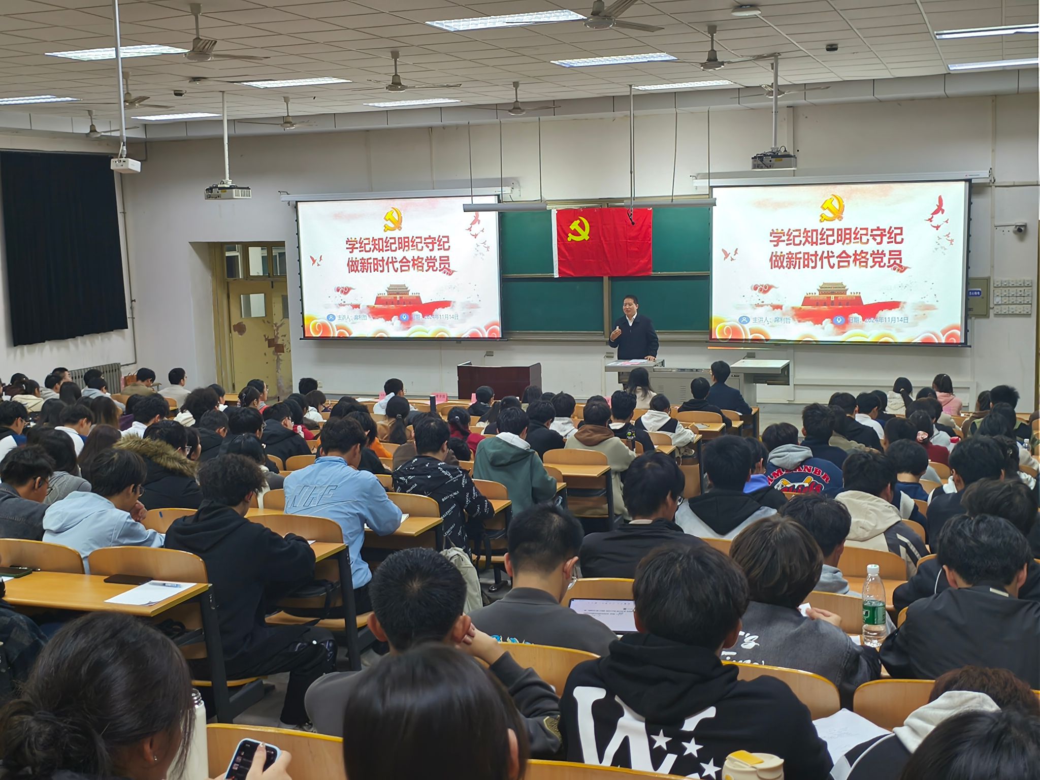 党委书记席利哲作了培训班第一讲。他以《学纪知纪明纪守纪,做新时代合格党员》为主题,通过与多名同学互动提问的方式深入浅出地讲解了新时代合格党员的标准和内涵,一要讲政治、有信念,确保在铸魂立根上合格;二要讲规矩、有纪律,确保在遵规守纪上合格;三要讲道德、有品行,确保在崇德修身上合格;四要讲奉献、有作为,确保在干事创业上合格。他指出,学纪、知纪、明纪、守纪是每个党员的必修课,学纪是基础,知纪是前提,明纪是根本,守纪是关键,要深刻认识党的纪律在教育引导、警示预防、惩戒纠错方面的功能,自律和他律相结合的实质,以及加强党的纪律建设的重要性。他为全体参训学员解读了《中国共产党纪律处分条例》的主要内容和负面清单,以典型案例生动诠释了党的纪律的严肃性和权威性。最后,他鼓励大家努力学习,争取早日入党,把遵规守纪内化为思想和行动自觉,敬畏法纪,从小事做起,在日常坚守,以新时代合格党员的标准严格要求自己,跑好中国式现代化的接力棒,在民族复兴的宏伟征程中写就青春的华彩篇章。