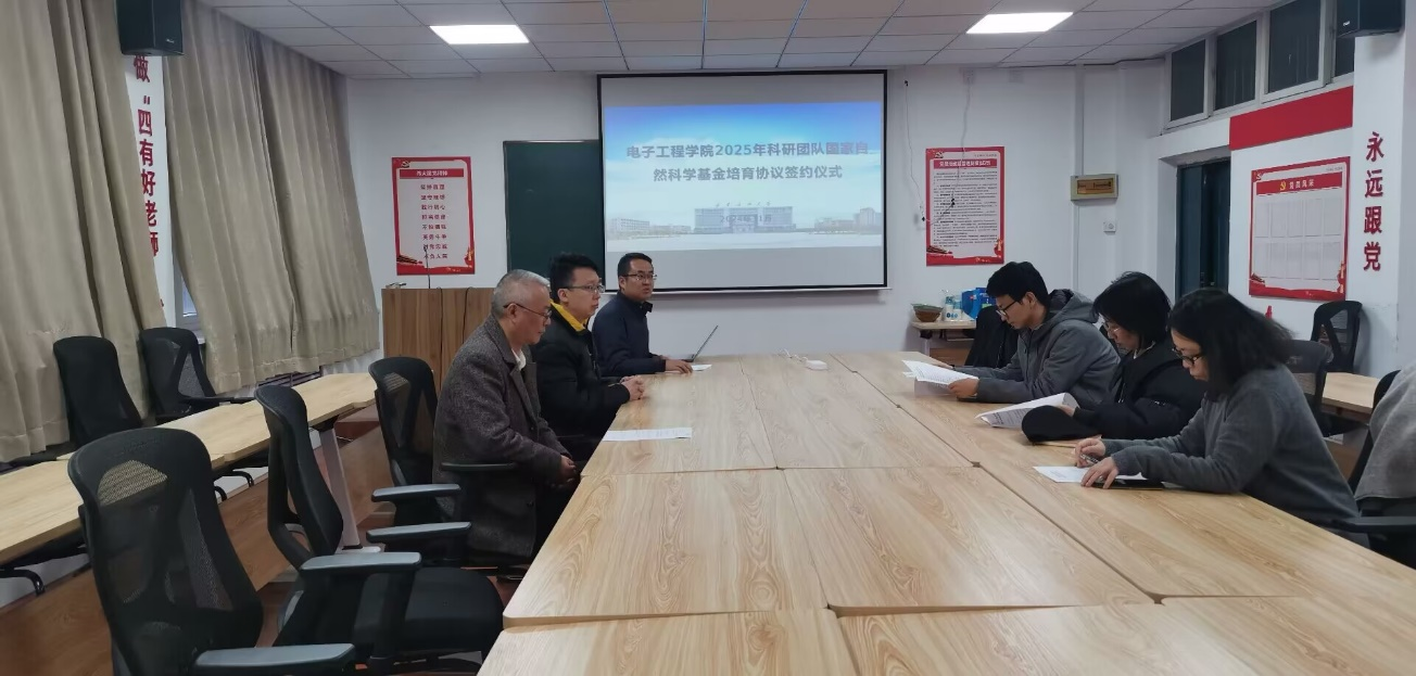 在905会议室举行科研团队国家自然科学基金培育协议签约仪式。院长李飞、各科研团队负责人出席签约仪式,会议由副院长杨一主持。