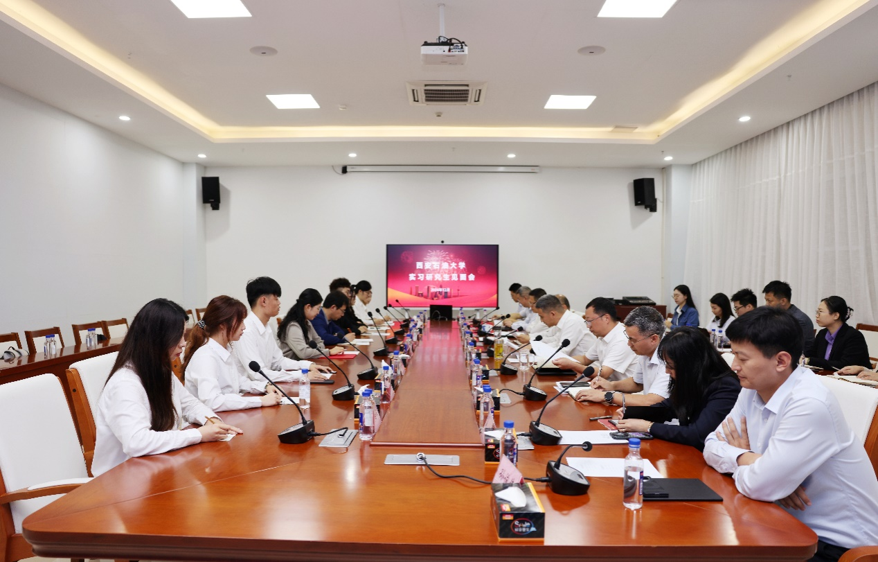 研究生实习见面会,公司选派的导师与实习生正式见面。公司董事长、党委书记韩钊、副总经理单宝恺和谢鑫,李春霄、武欢以及全体实习生出席了见面会。会议由公司党委委员、纪委书记金乃仓主持。