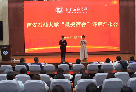 承办的2023-2024学年本科生“最美宿舍”评审汇报会在鄠邑校区弘石报告厅开展,全校300余名师生到场观摩。