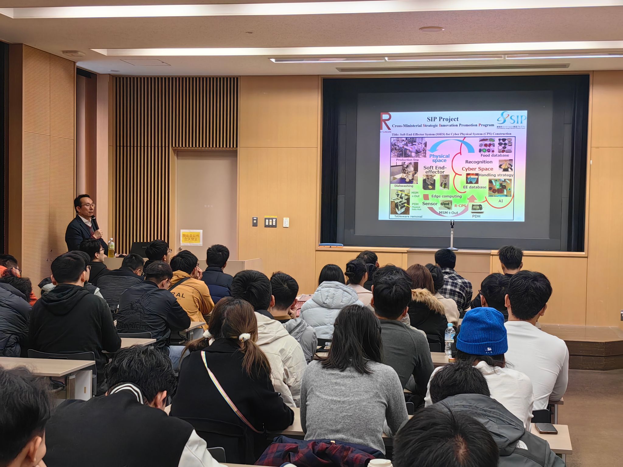 以及国立和公立大学,该联盟是日本大学合作组织的先行者,其规模为日本之最。在京都大学联盟基地,同学们参加了王忠奎教授题为“软体机器人技术应用”的专题讲座。王忠奎教授介绍了软体机器人在日本的发展趋势,以及软体机器人末端执行器在日本食品行业中的应用,讲述软体机器人的应用前景及未来的发展方向。在京都大学联盟,同学们与京都大学Cribug博士和陈晨博士作了深入交流。两位博士就日本留学、中日文化交流、中日大学生就业等话题,与同学们开展了深入的沟通交流,同学们踊跃提问,两位博士知无不言,现场气氛热烈。
