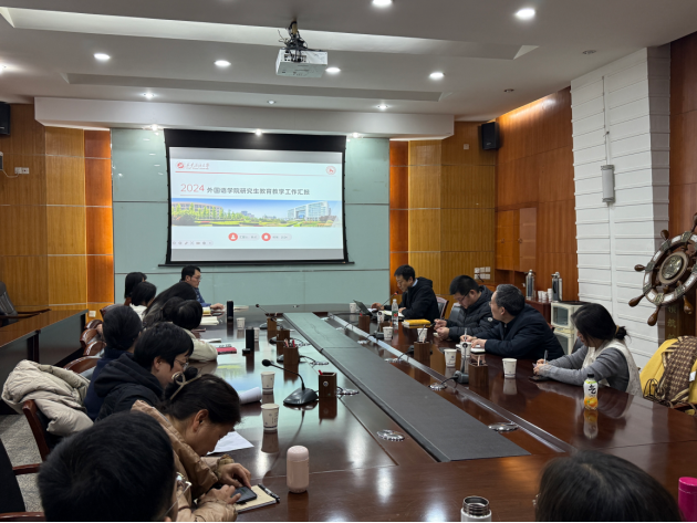 2024年研究生教育教学工作,包括课程教学、教学改革、课程建设、人才培养模式创新、研究生招生、学位点评估、联合培养基地建设、学科竞赛以及科研成果等。同时指出了翻译硕士人才培养当前存在的问题,如课程设置与市场需求对接不够紧密、实践教学环节相对薄弱等。在此基础上,陈武副院长提出了三项工作要求:首先,要进一步强化教学改革与课程建设,不断优化研究生培养方案,以提升教学质量为核心;其次,要加强学位点建设,严格对照学位点申报的各项指标要求,针对性地开展学位点建设;最后,要健全研究生培养过程的管理体系,完善考核机制,同时注重提升导师队伍的整体素质与教学能力,为研究生的高质量培养提供坚实保障。