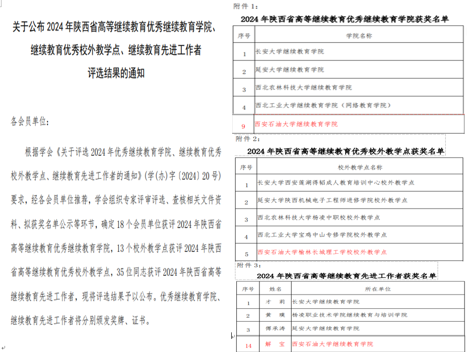(培训中心)解宝荣获“陕西省高等继续教育先进工作者”称号;在“陕西省高等继续教育第五届优秀论文”评选中,继续教育德州扑克