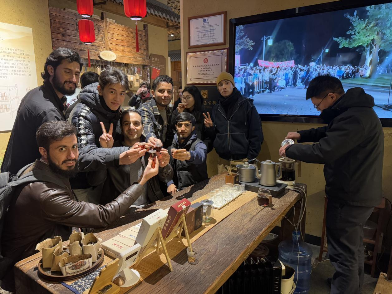 活动最后,留学生们走进中国茯茶文化博物馆,仔细听取讲解员对茯茶历史渊源、制作工艺、品鉴方法和文化价值的介绍,亲身体验茯茶的制作过程,领略中国茶文化的博大精深。