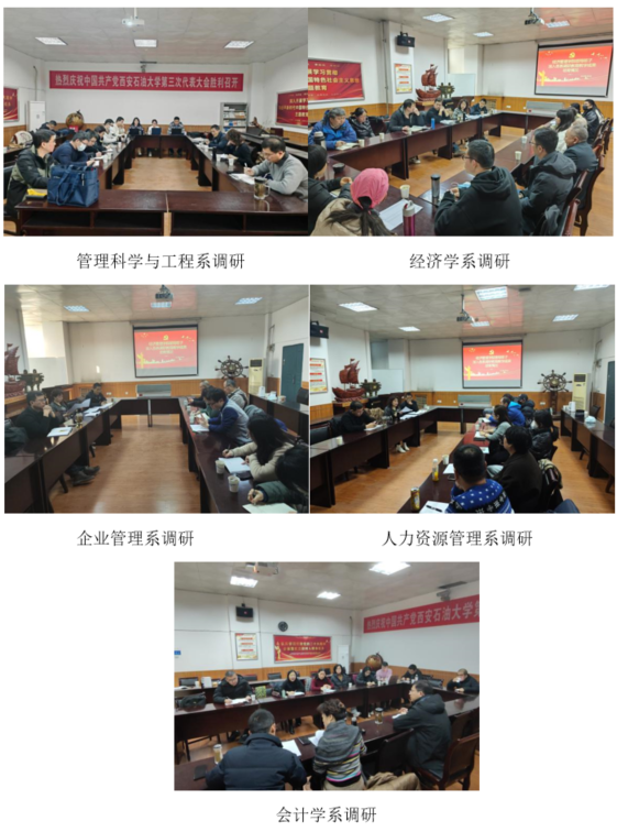 领导班子成员王君萍院长、董春诗副院长、李春霄副院长赴管理科学与工程系、会计学系、企业管理系、经济学系、人力资源管理系调研,深入了解、梳理、总结各系教育教学成果培育情况。