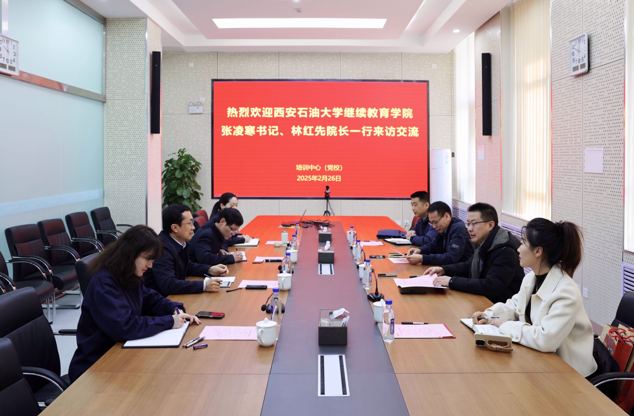 (培训中心)党总支书记张凌寒、院长(主任)林红先一行4人,赴中油测井培训中心(党校)进行走访交流。中油测井培训中心(党校)主任、党委副书记张荣新,主任助理兼井控与安全培训部主任桂鹏飞,以及综合办公室、培训部负责人参加了座谈会。座谈会由张荣新主持。