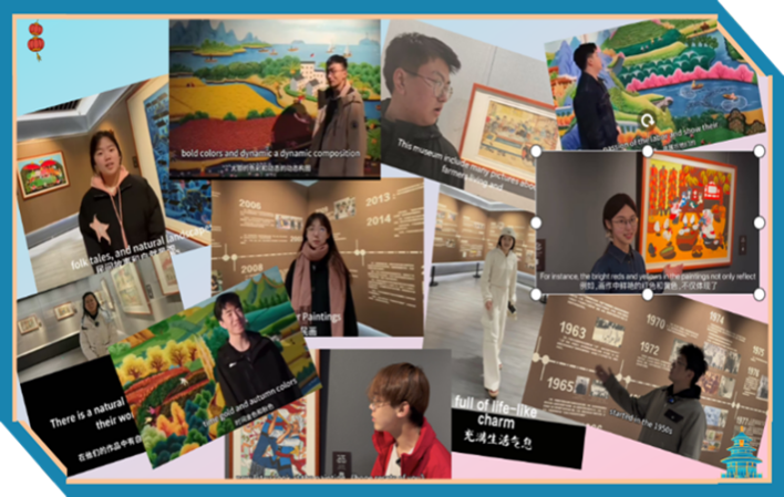 计算机2410班王璐和温子迪同学分享道:“鄠邑农民画作品色彩鲜明的颜色对比,浪漫稚拙的创作风格,大胆生动的想象,让我们看到了农民对生活的热爱。这次英文讲解活动使我们在专业术语积累、口语流畅度及跨文化叙事逻辑上有了显著提升,使我们更有信心来传播中国文化,让世界体会中国魅力。”