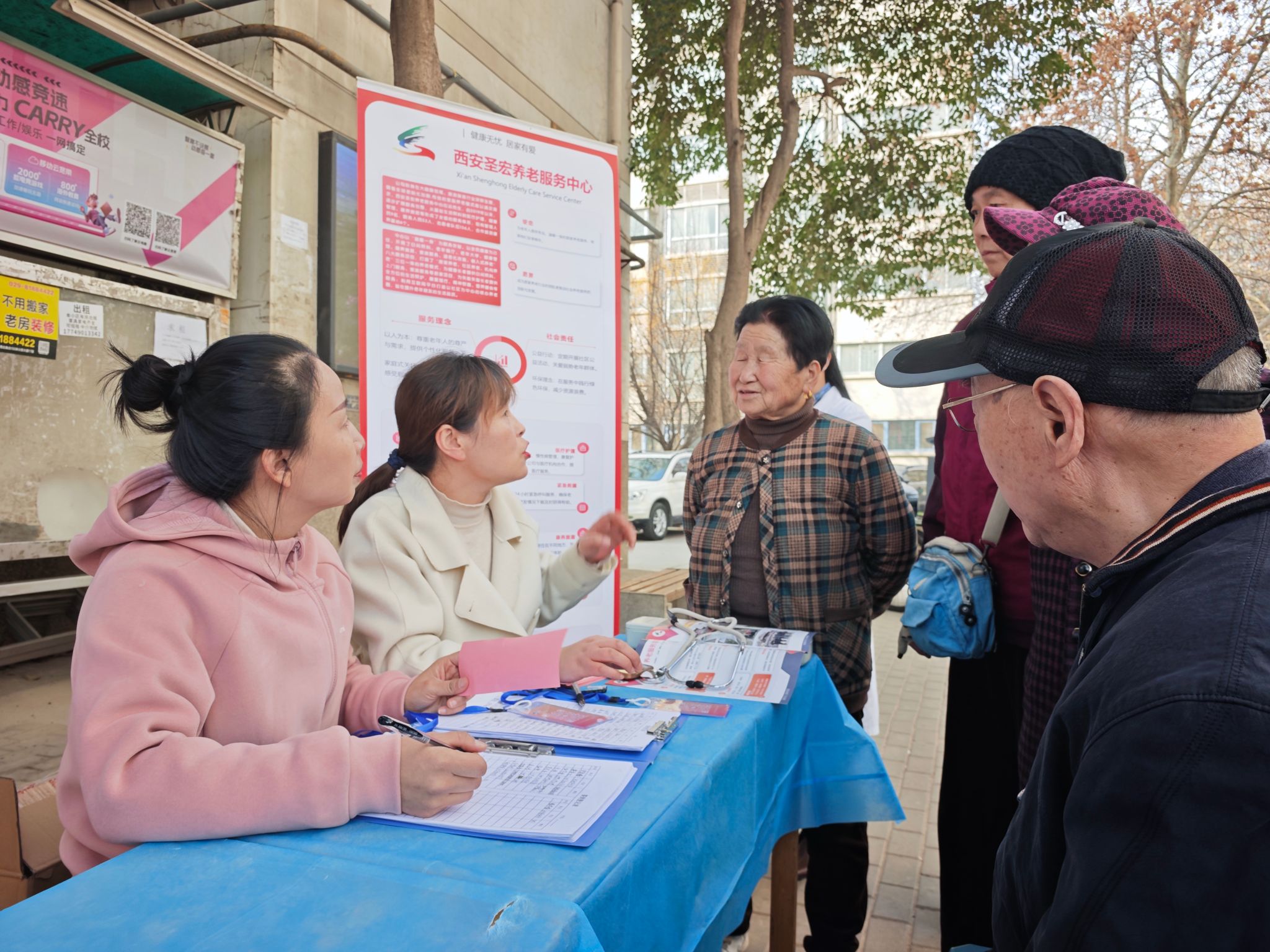 西安圣宏养老服务中心工作人员为前来咨询的师生、社区居民详细介绍了医康养结合的相关内容以及德州扑克