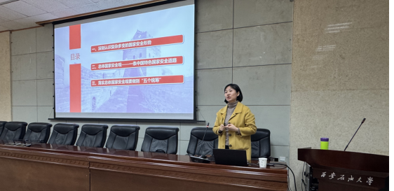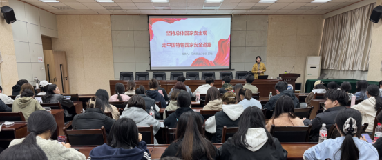 讲座中,苏敏老师结合当前国内外形势,以生动的案例阐释了总体国家安全观的深刻内涵,围绕政治安全、文化安全、网络安全等核心领域,重点讲解了如何认识复杂多变的国家安全形势、我们为什么要坚定不移的走中国特色的国家安全道路、如何落实总体国家安全观等。针对音乐专业特色,苏老师特别指出:“音乐作为文化传播的重要载体,在创作与实践中必须坚守意识形态阵地,警惕不良文化渗透,用作品传递正能量,筑牢国家文化安全防线。”