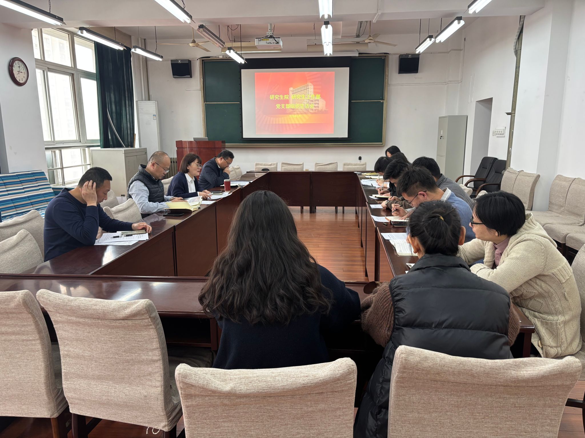 3月12日下午,研究生院、研究生工作部党支部在东方石油楼906召开党支部集体学习和2024年支部组织生活会。会议由党支部书记田虹霞主持,支部全体党员参加。