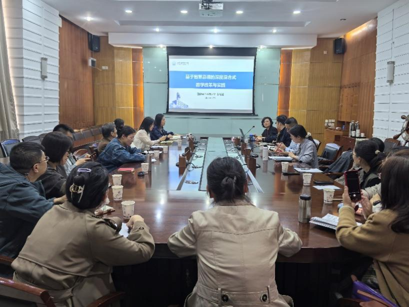 在研讨环节,与会教师围绕”AI技术在教学评价中的应用路径”“智能平台与课程体系的融合策略”等核心议题展开热议。多位教师结合一线教学实践,就个性化学习图谱构建、教学资源智能推荐算法等关键技术问题与朱教授深入探讨,现场学术氛围浓厚。