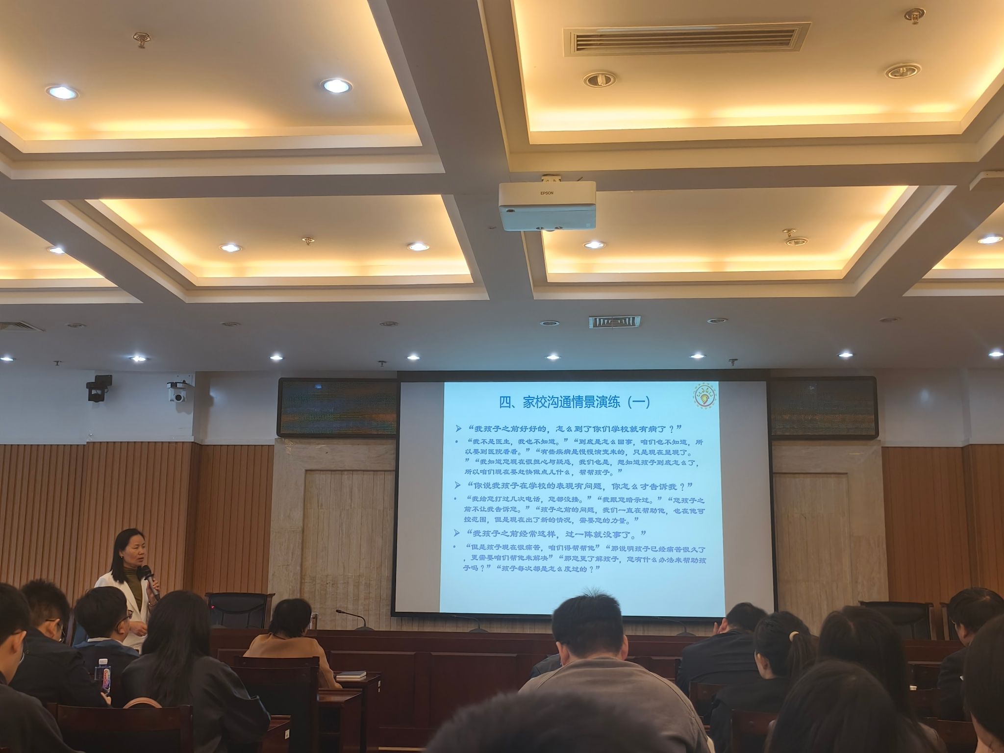 培训开始,肖琼带领全体学工干部进行了“惊猴缩脖”和“背后七颠百病消”的小活动,让大家直观地感受了锻炼中蕴含的情绪变化,为大家带来了全新的体验。然后肖琼从大学生心理危机界定、背景知识、以联盟式沟通促质量提升、高校沟通情景演练等四个方面深入浅出地介绍高校学生心理工作中的关系难题、法律保障、家校沟通的原则、流程、话术和宝贵经验等。培训通过一个个鲜活的案例,既有理论的解读,也有实践的分享,对于提升德州扑克