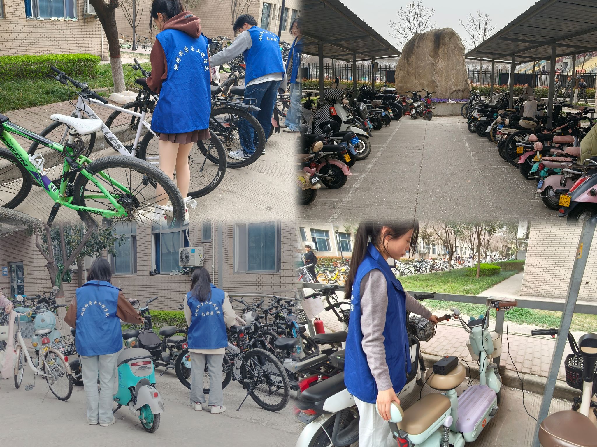 以"服务人民、助人为乐"的雷锋精神为指引,组织青年志愿者对校园内各电动车、自行车停放点开展系统巡查,重点对随意停放、占道阻碍的车辆进行规范整理。经过志愿者们的共同努力,累计规范整理车辆200余辆,覆盖教学楼、宿舍区等5个重点区域,校园车辆停放秩序得到显著改善。