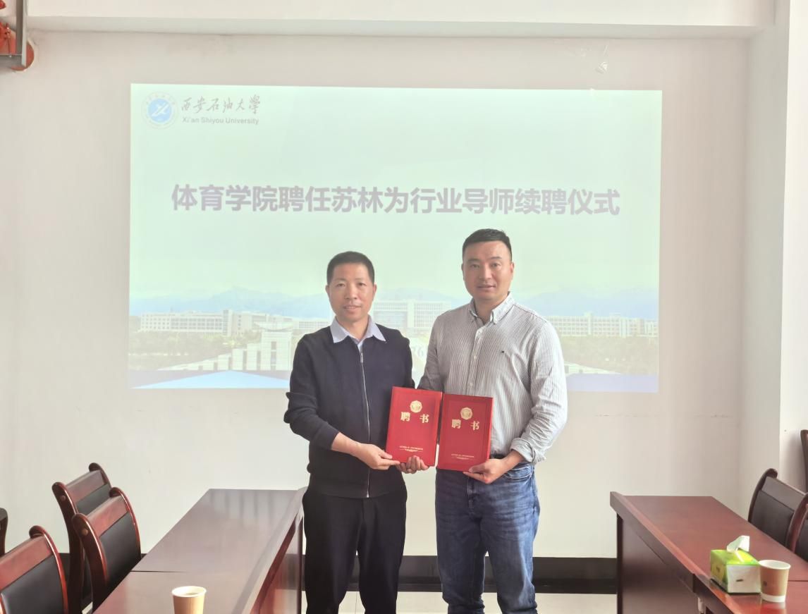 在鄠邑校区东体育场208会议室举行了续聘仪式,继续聘任苏林院长为社会体育指导与管理专业行业导师、体育硕士专业学位研究生校外导师。