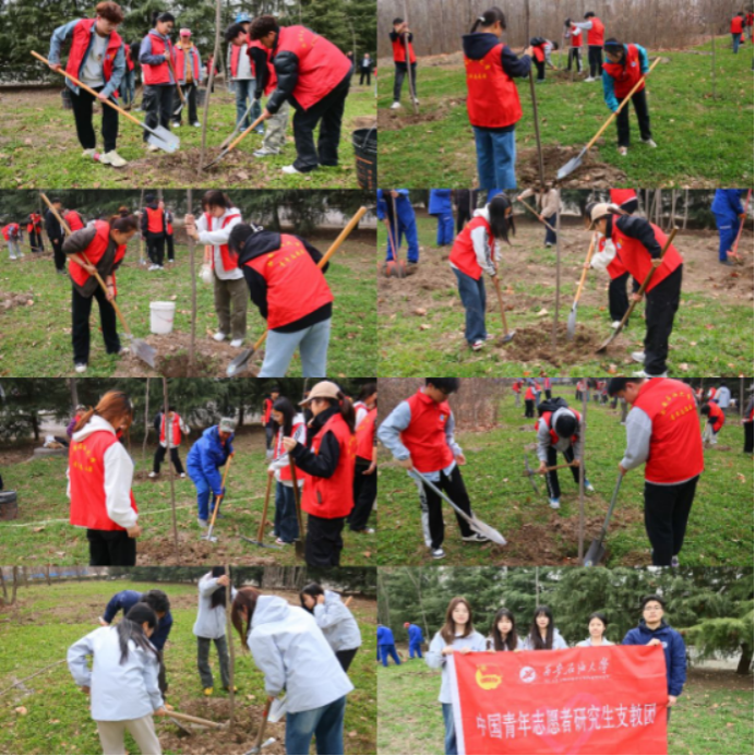 2025年校园义务植树活动,后勤处、校团委负责人、第27届研究生支教团全体成员和100余名师生代表参加了活动。植树现场,大家配合默契、干劲十足,挥锹铲土、扶树定根、培土围堰、提桶浇水,每一个步骤都凝聚着广大师生的热情与汗水,在大家的共同努力下,一排排新栽的树苗在春风中挺立,为校园增添了勃勃生机。