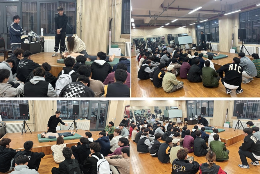 组织开展“争分夺秒 救在身边”—心肺复苏教学实践培训志愿服务活动。活动期间,志愿者们一边向同学们讲解心肺复苏的意义和操作方法,一边作示范演练,深入浅出地为同学们详细讲解了急性胸痛、气道异物处理以及非专业人员心肺复苏的方法。随后,志愿者们指导同学们进行了实操演练,并对操作中的错误给予及时纠正,让所有参与培训的同学真正掌握急救知识和心肺复苏技能,增强自身应对突发事件的自救互救意识。