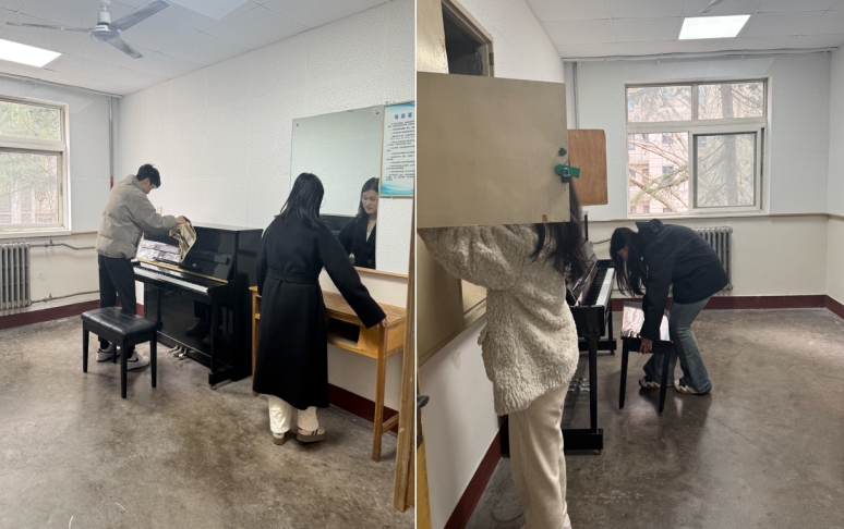 音乐系组织学生以班级为单位,开展琴房清扫活动。活动前,同学们提前准备好扫把、拖把、抹布、水桶等清洁工具,大家分工明确,扫地拖地、清理地面、擦拭琴键琴身以及桌椅等,不放过任何一个卫生死角。在清扫过程中,同学们充分发挥不怕脏、不怕累的精神,认真仔细地完成每一项任务,为同学们营造了一个更加整洁、舒适的学习环境。