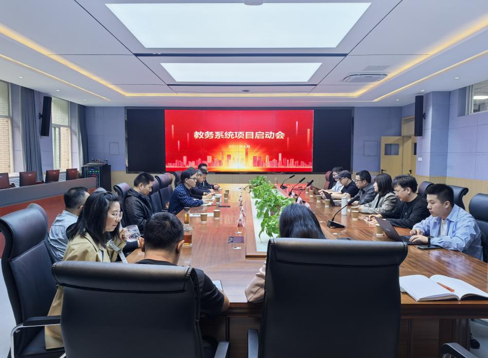 在鄠邑校区博览楼A116室召开教务系统项目启动会。教务处全体处科级干部、实验室管理处、信息化建设与管理处、高教研究与评估督导中心相关负责人,超星集团陕西分公司总经理高华、副总经理曹瑾、项目总监何中楷及相关工作人员参加了会议。会议由教务处处长时保宏主持。