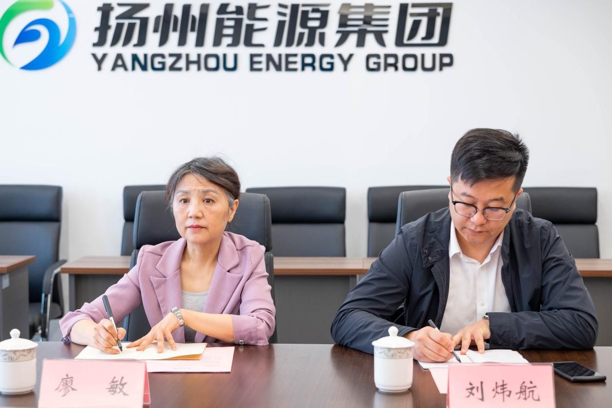 党委书记廖敏、党委副书记刘炜航赴扬州能源集团访企拓岗,就相关合作事宜开展座谈交流。扬州能源集团党委书记、董事长孔德存,洁源新能源公司董事长胡友军,扬州能源集团纪委书记王亭、副总经理余国云、办公室主任罗雪出席座谈会。