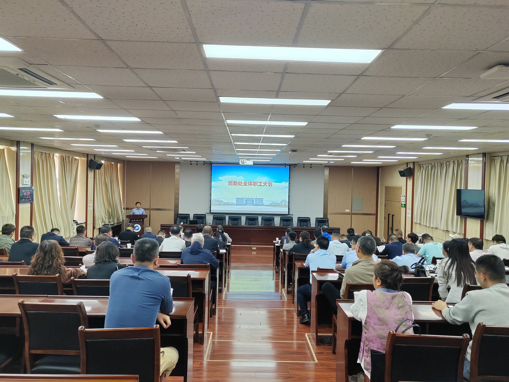 4月14日下午,后勤处在雁塔校区召开了后勤处全体职工大会,对2025年工作进行了安排部署。副校长张骁勇参会并对后勤处开展工作提出明确要求。