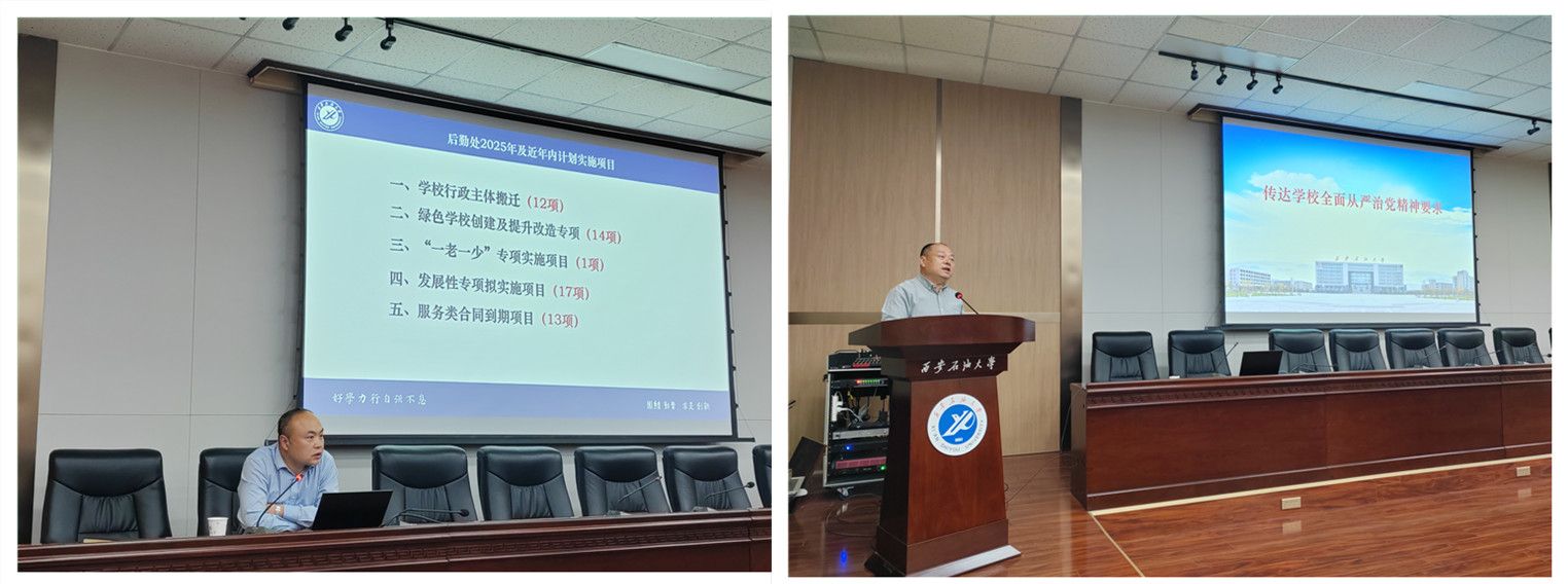 中心工作高质量开展后勤服务保障提出三点要求:一是要统一认识、提高政治站位,要深刻把握后勤工作的服务属性,以“师生至上”为宗旨,全面提升服务意识,为打造“幸福西石大”贡献后勤力量。二是要协同攻坚、提升服务效能,坚持全局“一盘棋”思想,强化部门联动,突破沟通障碍,以“马上就办、办就办好”的作风,跑出后勤保障“加速度”。三是要严明纪律、铸牢廉洁防线,完善制度规范,构建“受理-处置-反馈”闭环机制,严守纪律红线,以风清气正的政治生态推动服务质量再上新台阶。